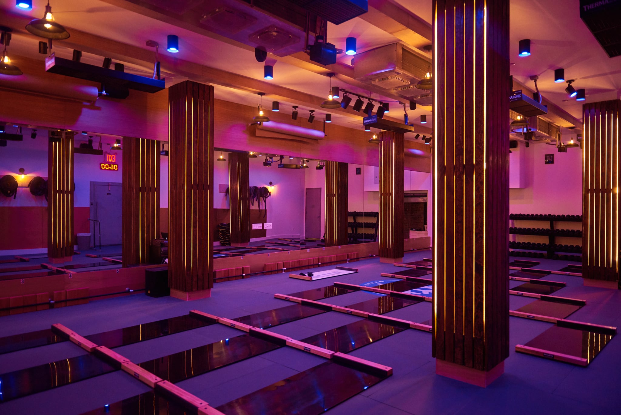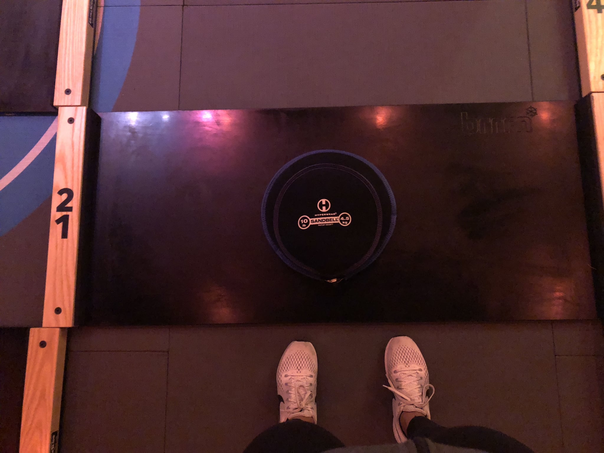 Our instructor took us through a 45-minute circuit-based workout that focused on core and total-body conditioning. One minute we were throwing sandbells down on the ground as hard as we could, and the next minute we were gliding like ice skaters on the shuffle board. I liked that the workout was a combination of high-intensity moves off the board and more controlled exercises on the shuffle board.