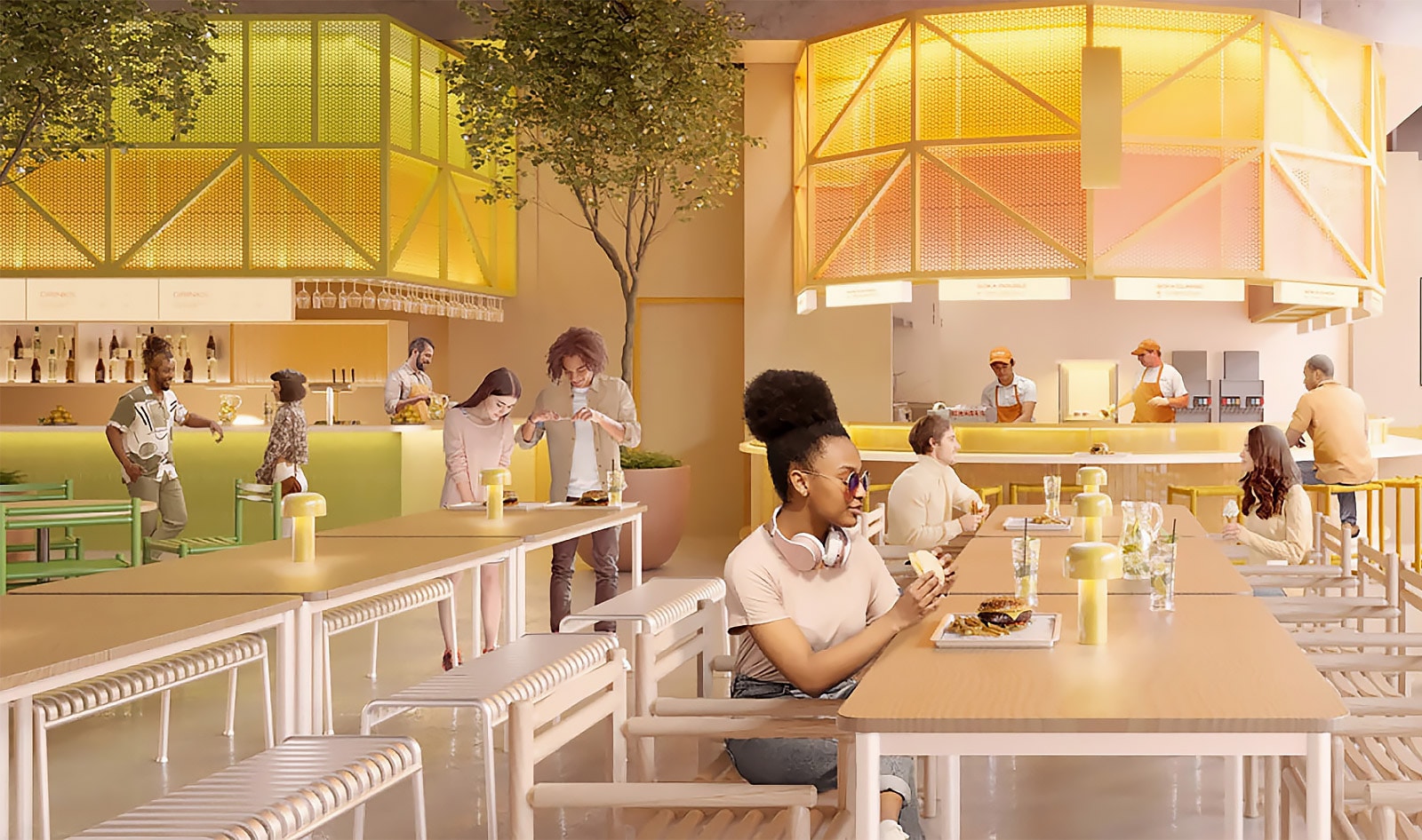 “We want it to be about a whole lot more than what’s on the menu—a modern and original twist on the traditional food hall; providing local communities with a place to meet, while eating delicious food and socializing together in an even more inclusive and sustainable way,” Nielsen said.